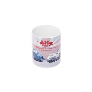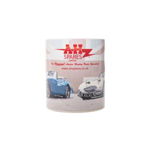 Stylish A.H. Spares branded mug with unique Austin Healey 3000 and Sprite MK1 Frogeye design.