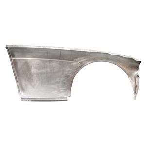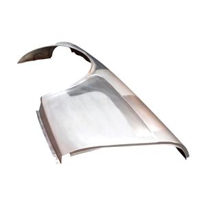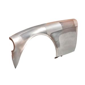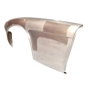 This is a pressed, Austin Healey aluminium front wing with a flared wheel arch to allow the use of wider wheels.