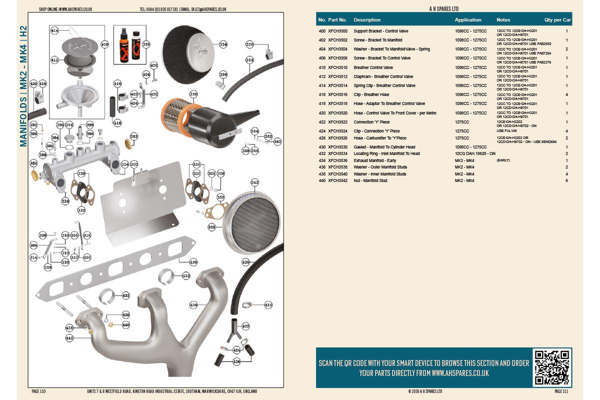 Free with online orders £100+ (select at checkout). Orders under £100 or catalogue-only orders incur a delivery charge based on destination. One printed catalogue per customer, supplied at A H Spares’ discretion.