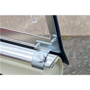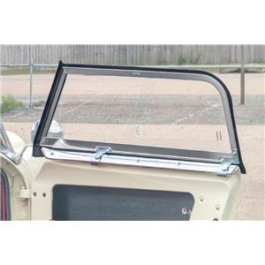 Right-hand sidescreen for Austin Healey Sprite MK1 & MK2 and MG Midget MK1. Manufactured and assembled in-house as an accurate reproduction of the original specification, including the original-style “Weather Shield” stamped markings. Supplied complete with clear perspex and a pre-fitted seal; now delivered with the correct fixing brackets. Sold individually.