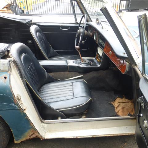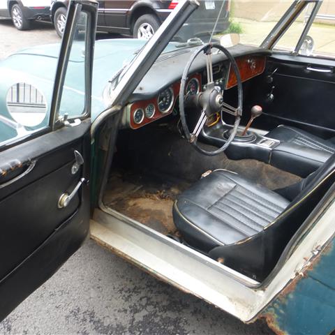 Description 1967 Austin Healey 3000 BJ8 MKIII that is a good car for a restoration. The car is in British Racing Green with a Black interior. It is a low ownership car that has been standing for over 20 years. There is rust on almost all the body parts. The engine is frozen. The gearbox is working. The main chassis (frame) of the car is straight and solid. Car rolls and steers for easy transport. Car comes with a spare wheel, tonneau cover and some extra parts. Price $ 17,950. |
