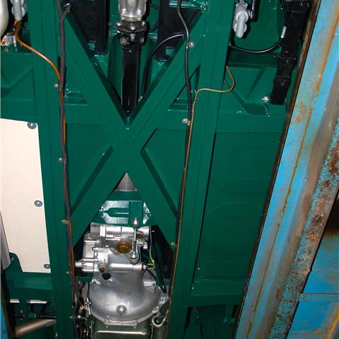 into the engine compartment. The car was pushed back into the garage to be